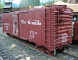 Gauge Idler Cars(2004) Whereas other railroads with dual gauge trackage made use of locomotives with either multiple pilot mounted knuckle couplers or a single coupler which could be offset to one side (the East Broad Top and the Tweetsie, respectively, come to mind here), the Denver & Rio Grande Western also constructed a series of standard gauge idler cars for the sole purpose of coupling rolling stock of two different track gauges to one another for operation on dual gauge track, either for switching chores in a dual gauge yard, or as was done between Antonito and Alamosa, for operation in a train of mixed gauge equipment! These peculiar standard gauge cars, which in operation carried no freight, should be distinguished from a variety of narrow gauge "idler" flat car used by the D&RGW during the 1950s era Colorado gas well boom, the latter cars having acted as "spacers" between narrow gauge gondolas which actually bore the weight of oversize lengths of pipe.
